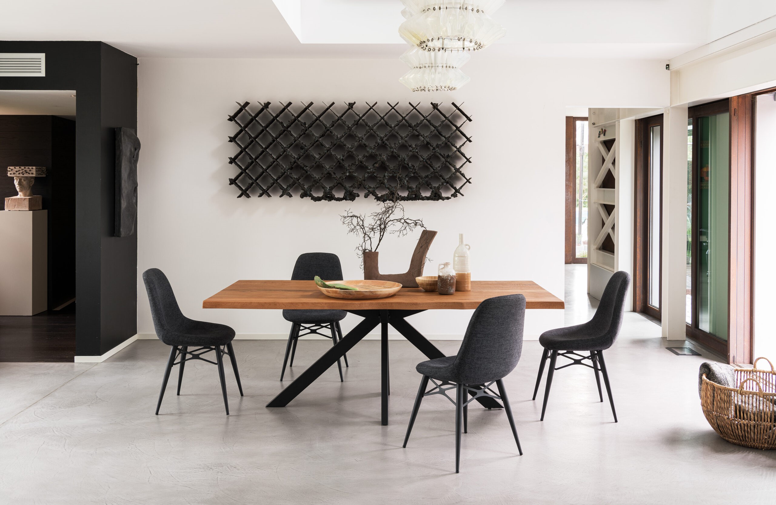 Con le sue geometrie, il tavolo Cross dona profondità ai piccoli spazi.